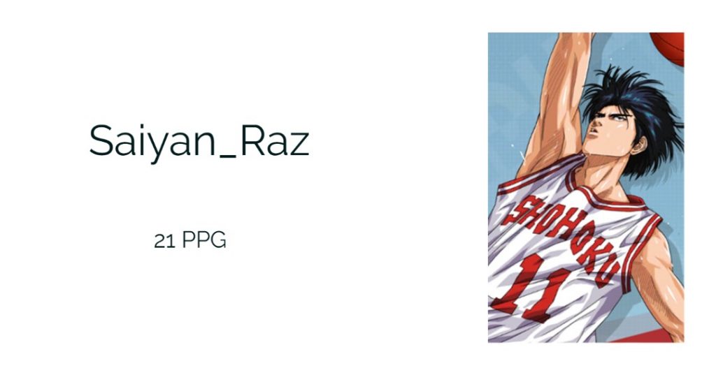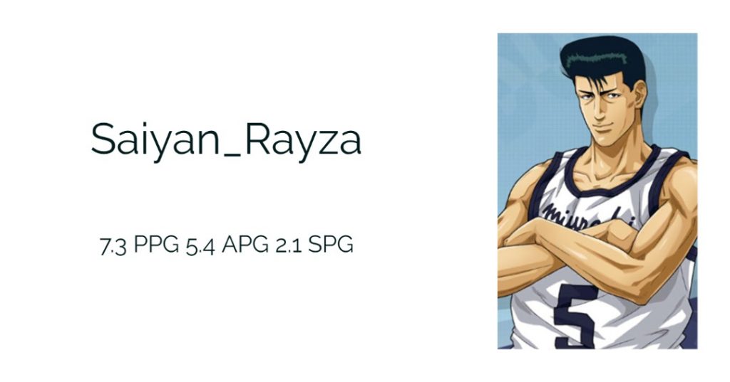 Saiyan Raz menjadi Candidate ke dua bakal calon MVP, Captain dari team Vegeta ini dari game per game membuktikan bahwa dirinya un guardable selama berlangsung nya liga. Torehan prestasinya dengan mencetak 20 points per game menjadikan satu-satu nya pemain di sepanjang liga yang berhasil meraih rata-rata point sebanyak itu. Sungguh perolehan stats yang tidak bisa di dekati oleh pemain lainnya.